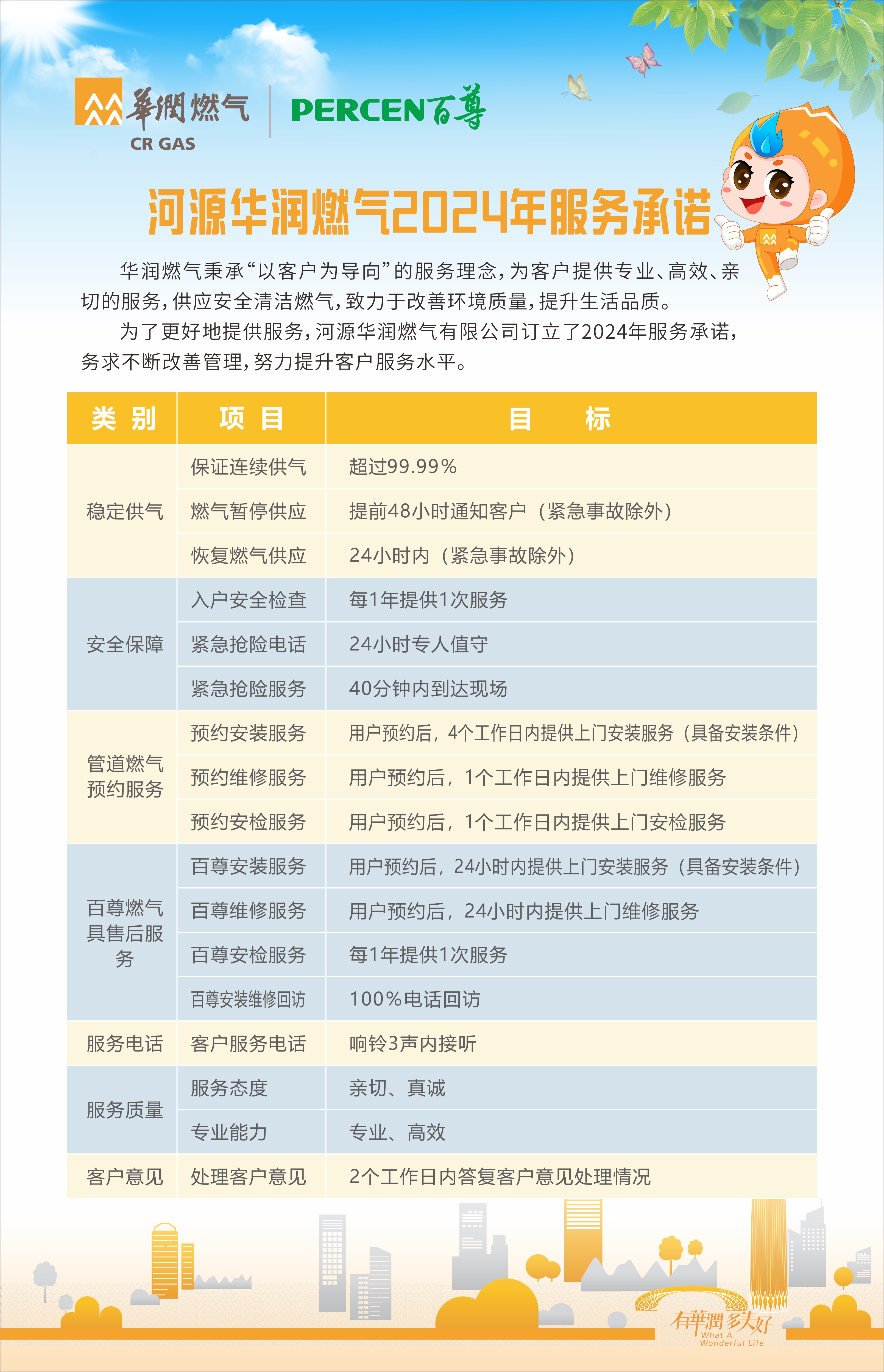 新奧燃?xì)夤痉?wù)承諾、河源華潤(rùn)燃?xì)夤痉?wù)承諾
